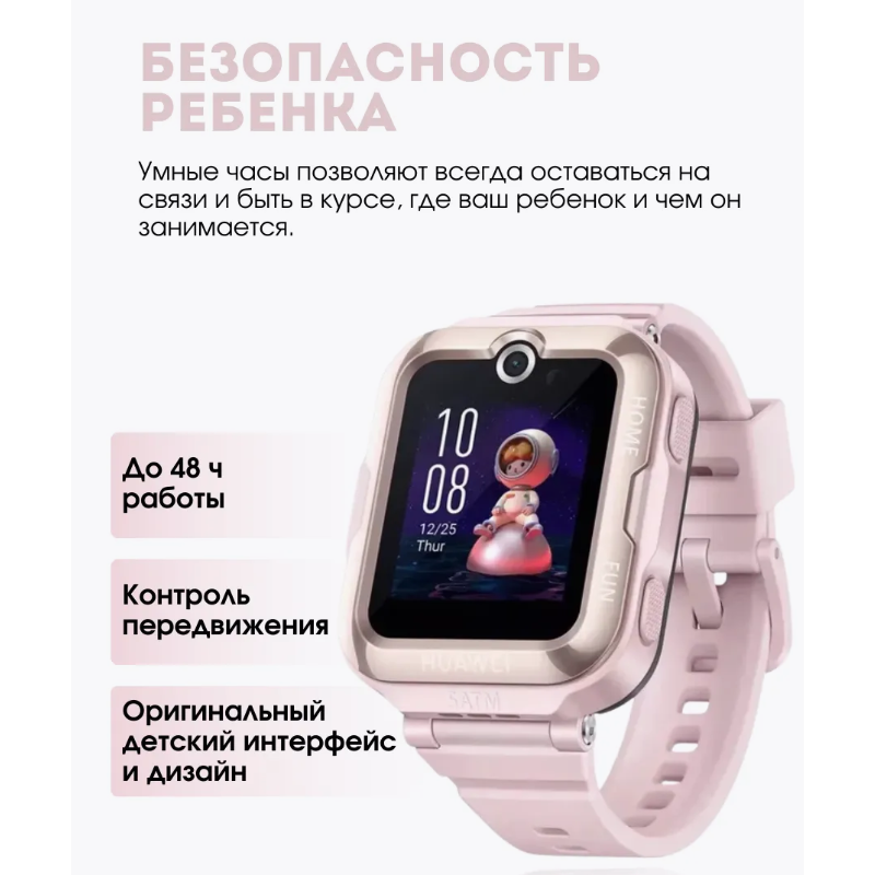 Huawei Watch Kids 4 Pro – это многофункциональные детские смарт-часы, разработанные с учетом потребностей как детей, так и их родителей. Они обеспечивают надежную связь, безопасность и множество развлекательных функций, стимулирующих интерес к активному образу жизни. Преимущества: • Высококачественная камера: Встроенная камера на 5 Мп позволяет делать четкие снимки и видеозвонки. • Надежная связь: Возможность совершать и принимать звонки, а также общаться в чате с родителями. • Безопасность: Функция родительского контроля позволяет отслеживать местоположение ребенка, а кнопка SOS обеспечивает быструю связь в экстренной ситуации. • Забота о здоровье: Отслеживание активности и поддержка спортивных режимов (плавание, прыжки через скакалку, качание пресса) стимулируют ребенка к активному образу жизни. • Удобство использования: Управление осуществляется с помощью сенсорного экрана. • Прочность и надежность: Пыле-, влаго- и ударопрочный корпус обеспечивает долговечность и надежную работу. • Навигация: Встроенные GPS и компас позволяют точно определять местоположение ребенка. • Длительное время работы: Емкий аккумулятор на 800 мА·ч обеспечивает длительное время работы без подзарядки. Характеристики: • Встроенная камера: 5 Мп • Звонки: Управление и разговор • Возможность говорить по часам: Да • Спортивные профили: Плавание (прыжки через скакалку, качание пресса) • Компас: Да • Пыле-, влаго-, ударопрочность: Да • Акселерометр: Да • Гироскоп: Да • Датчик освещенности: Да • GPS: Да • Емкость аккумулятора: 800 мА·ч Хуавей часы Watch Kids 4 Pro – это идеальный выбор для родителей, которые хотят обеспечить безопасность и развлечение для своего ребенка, а также привить ему любовь к активному образу жизни.
