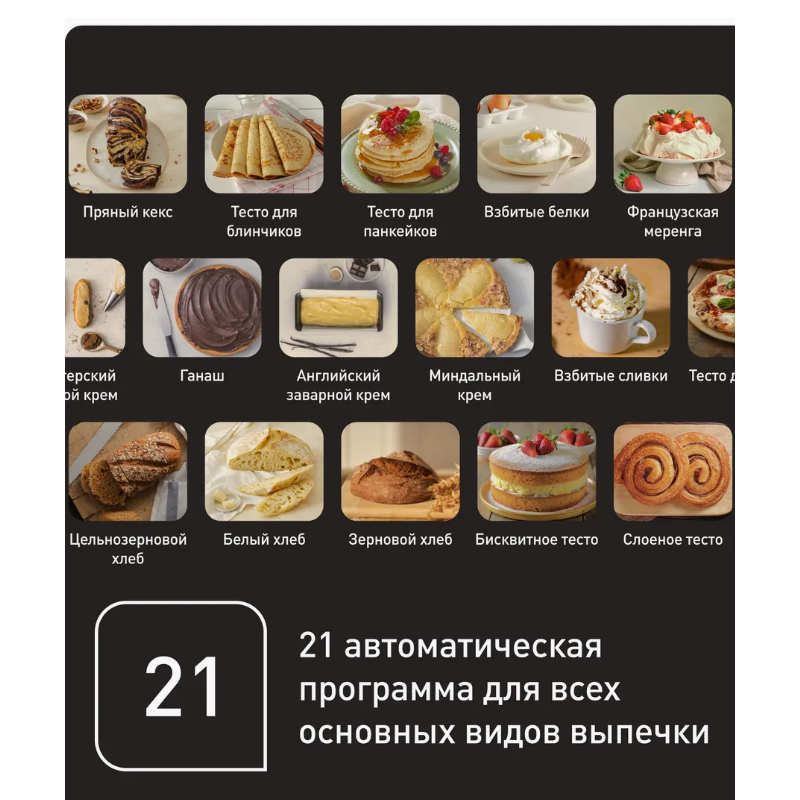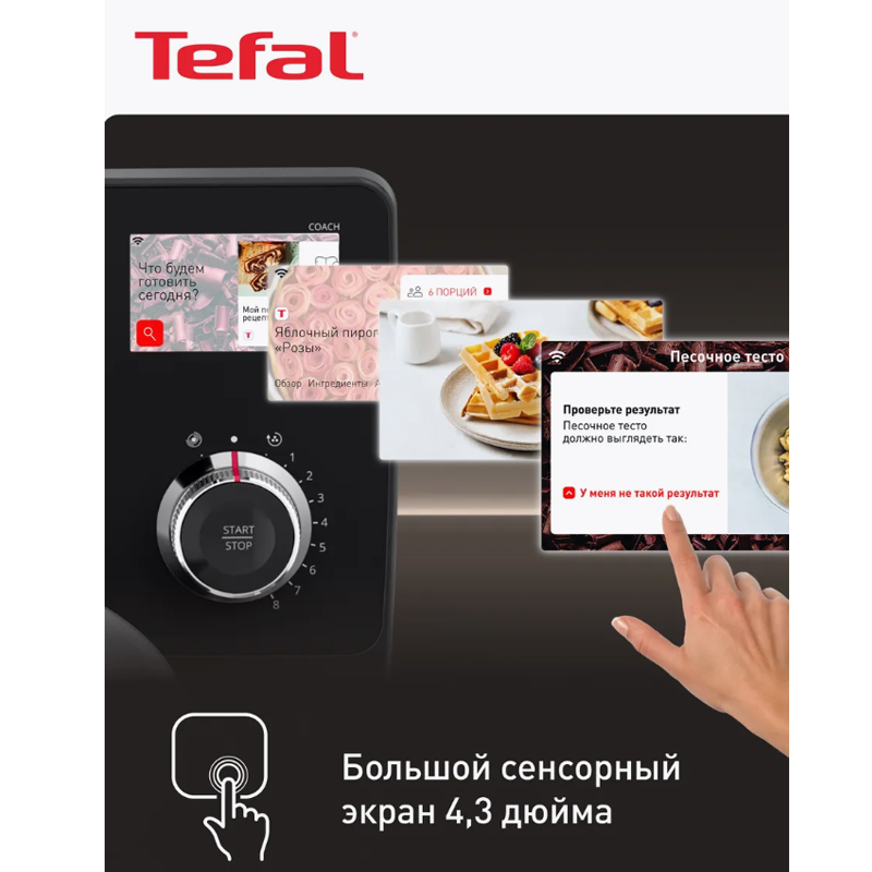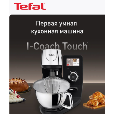 Кухонная машина Tefal i-Coach Touch QB951DF0 - это ваш ключ к разнообразной и вкусной свежей выпечке каждый день. В процессе приготовления вы сможете наслаждаться безупречной выпечкой и открывать для себя новые рецепты благодаря 21 автоматической программе, подробному руководству, пошаговым рецептам, видеоурокам и разнообразными советами. Также планетарный миксер для кухни оснащен 10 скоростями работы, включая деликатный режим и pulse для быстрого смешивания, который гарантирует идеальный результат при любой кулинарной задаче. Мотор мощностью 1200 Вт с технологией EverMore и деталями из нержавеющей стали невероятно надежен и позволяет эффективно смешивать любое, даже очень плотное тесто. Кроме того, электрический миксер является одним из самых тихих кухонных машин от Тефаль, поэтому во время готовки вы можете смотреть любимый сериал или общаться с близкими. Планетарное движение позволяет насадкам смешивать тесто по всей емкости, гарантируя качественный и равномерный результат. Чаша универсального миксера объемом 5,5 л позволяет готовить большие порции выпечки, вплоть до 2.7 кг теста для пирога или до 1.8 кг дрожжевого теста, а комфортная ручка позволяют легко переливать готовую консистенцию в форму. К тому же, в комплекте со стационарным комбайном есть все необходимые аксессуары для замешивания: венчик Flex Whisk из нержавеющей стали, литая насадка для смешивания жидких продуктов и крюк, который идеально соответствуют форме чаши и обеспечивает наилучшие результаты при взбивании, перемешивании и замешивании теста. А для того, чтобы добавлять необходимые ингредиенты даже во время работы, многофункциональный миксер оснащен загрузочным отверстием прямо в крышке устройства. Готовьте незабываемые блюда и всегда радуйте друзей и близких свежей выпечкой вместе с кухонной машиной i-Coach Touch от Tefal!