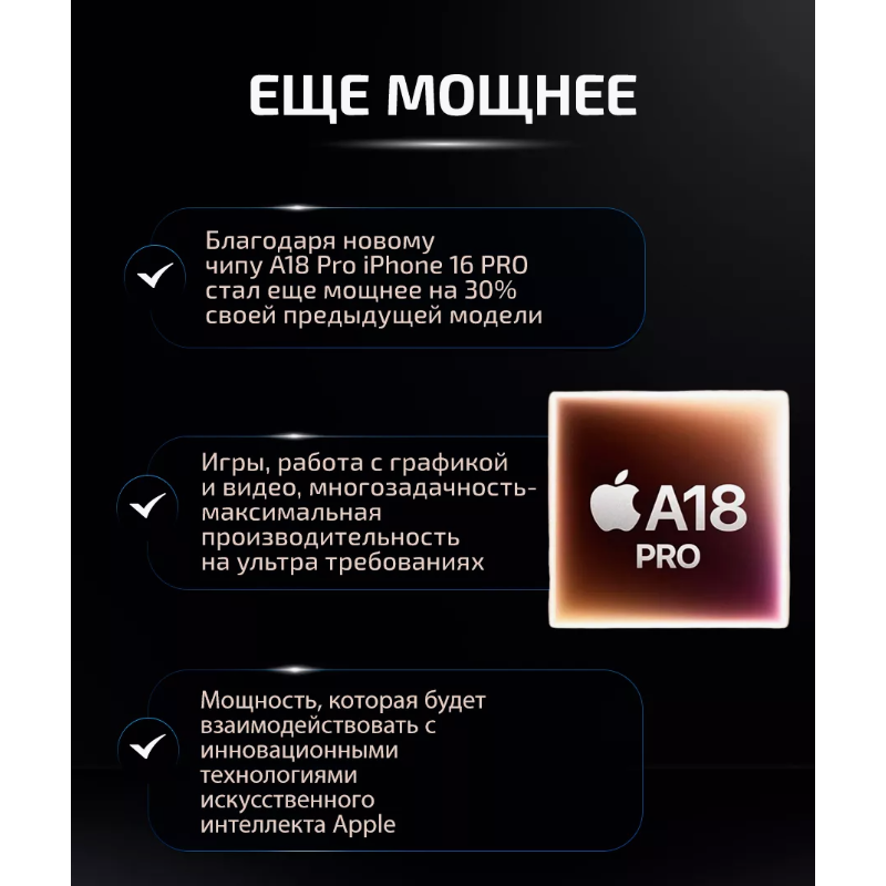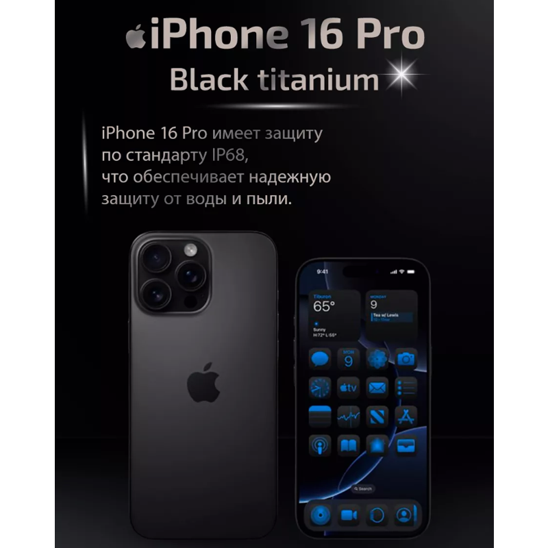 И все это упаковано в исключительно тонкий и стильный корпус, в чёрном(Black Titanium) исполнении который дополняет ваш образ, делая его еще более выразительным. Откройте для себя мир новых возможностей с iPhone 16 Pro уже сегодня.Описание