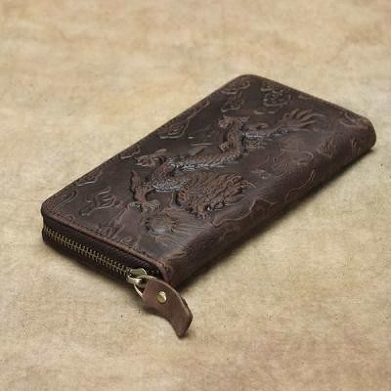 Ретро Лошадь Кожа Тисненый Кошелек 2021 Новый Дракон Узор Длинные Мужчины Кошельки Ручной Работы Кор