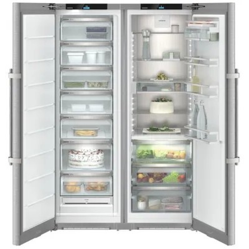 Дизайн и практичностьС моделями Side-by-Side от Liebherr Вы сможете комфортно хранить еще больше свежих и замороженных продуктов. Оптимальный выбор для большой семьи или для тех, кто не любит часто ходить в магазин!Зона свежести BioFreshВнутри контейнеров BioFresh поддерживается температура, которая близка к 0°С и высокая влажность – это оптимальные условия для хранения овощей и фруктов. В контейнере с низкой влажностью можно разместить мясо, сыры и другие молочные продукты.Сенсорный дисплейСенсорный дисплей с высоким разрешением и контрастом установлен за дверью. Он позволяет осуществлять интуитивно понятную настройку температуры и выбирать необходимые функции за несколько касаний. Динамическое охлаждениеВ системе PowerCooling используется мощный и тихий вентилятор, который обеспечивает активную циркуляцию воздуха, за счет этого внутри холодильника устанавливается равномерная температура, а угольный фильтр FreshAir попадание посторонних запахов во внутреннее пространство.Задняя стенка из нержавеющей сталиНержавеющая сталь с покрытием SmartSteel на задней стенке обеспечивает устройствам необычный и притягательный внешний вид. Такая поверхность является безопасной для еды, а еще на ней практически не остаются отпечатки пальцев.Колонны LightTowerДве LED-колонны наполняют внутреннее пространство холодильника белым светом. Во время работы они практически не выделяют тепло, потребляют мало энергии, обеспечивают оптимальный обзор и великолепный внешний вид.Контейнер для мелочейКонфигурируйте холодильник под продукты и емкости практически любого размера - для мелочей всегда найдется место. Контейнер VarioSafe оптимален для небольших продуктов и различных баночек.Комфорт в деталяхПланируете охладить чуть больше напитков, чем обычно? В устройствах с зоной свежести BioFresh для этого предусмотрена специальная полка. Для ее использования достаточно легким движением руки поднять стеклянную панель и расположить там бутылки, вскоре после этого они будут охлаждены и готовы к подаче.Контейнер SpaceBox в морозильной камереТеперь в морозильной камере можно комфортно разместить объемные продукты. С контейнером SpaceBox вы заморозите ту еду, которую нельзя расфасовать, например, целую индейку или большой торт. Контейнер с высотой 250мм позволяет легко их расположить!Ручка с толкателемНовая ручка с интегрированным механизмом толкателя позволяет открывать дверь практически без усилий. Её конструкция стала прочнее, а утонченный и элегантный дизайн будет оптимально гармонировать с различными интерьерами.Доводчики SoftSystemДоводчики SoftSystem позволяют закрывать дверь плавно и непринужденно, обеспечивая мягкость даже при резком закрытии и полной загрузке полочек. Бутылки и продукты будут находиться в спокойствии и не сдвинутся с места.Немецкое качествоПри разработке холодильного оборудования мы учитываем многолетний опыт наших инженеров и различные сценарии использования. Из-за этого наша техника получается инновационной, сбалансированной и удобной!